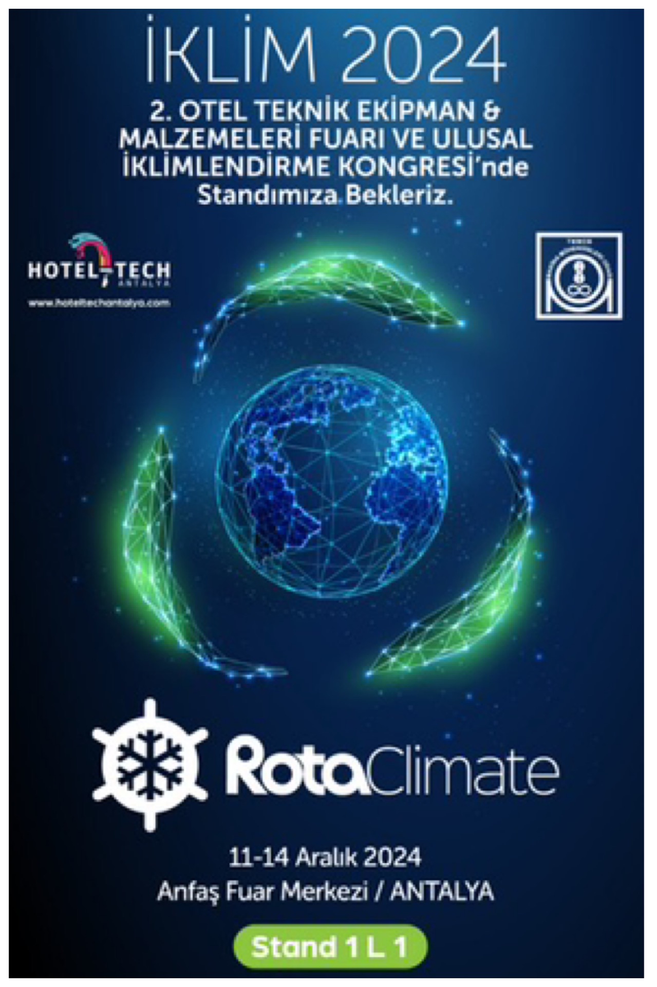 Rota Klima 11 Aralık – 14 Aralık 2024 tarihleri arasında Antalya Anfaş Fuar Merkezinde düzenlenecek “İklim 2024, 2. Otel Teknik Ekipman & Malzemeleri Fuarı” ve “Ulusal İklimlendirme Kongresi”nde turizm sektörünün profesyonelleri ile bir araya geliyor.
